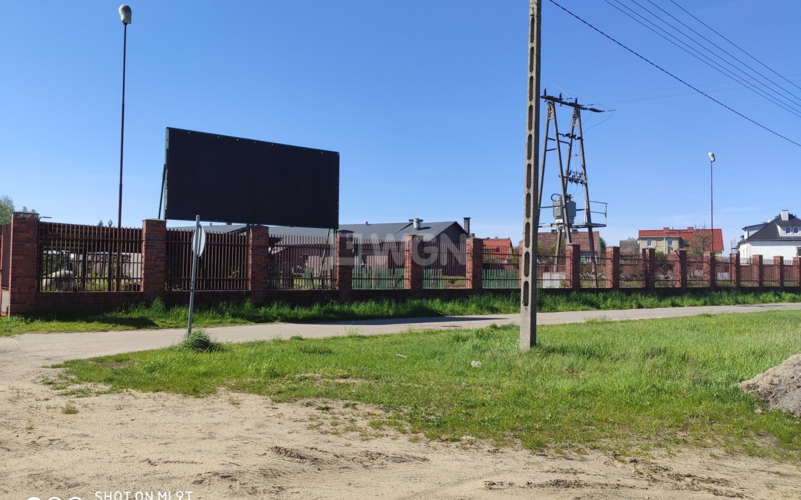 Teren utwardzony, całościowo ogrodzony, ogrodzenie z cegły klinkierowej.
