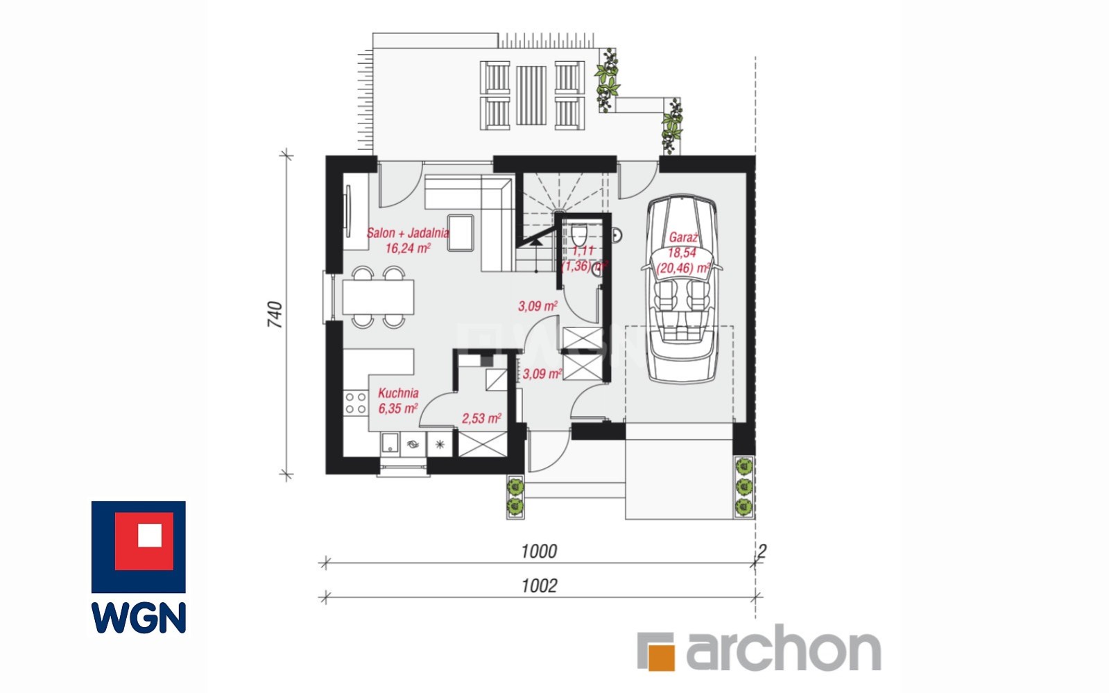 - Powierzchnia garażu 18,54 m
